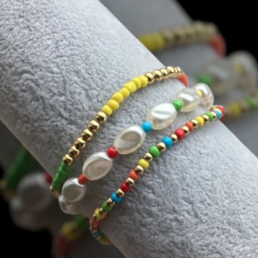 Slim Rainbow Pearl - Set of 3 Bracelet Stack