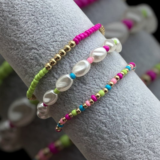 Slim Electric Pearl - Set of 3 Bracelet Stack