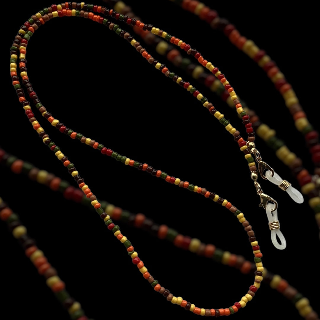 • Handmade glasses chain with seed beads in autumnal tones